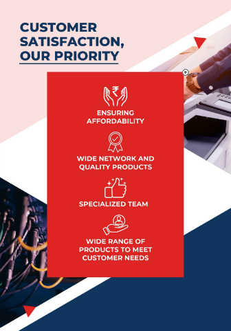 CUSTOMER SATISFACTION, OUR PRIORITY ENSURING AFFORDABILITY WIDE NETWORK AND QUALITY PRODUCTS SPECIALIZED TEAM WIDE RANGE OF PRODUCTS TO MEET CUSTOMER NEEDS